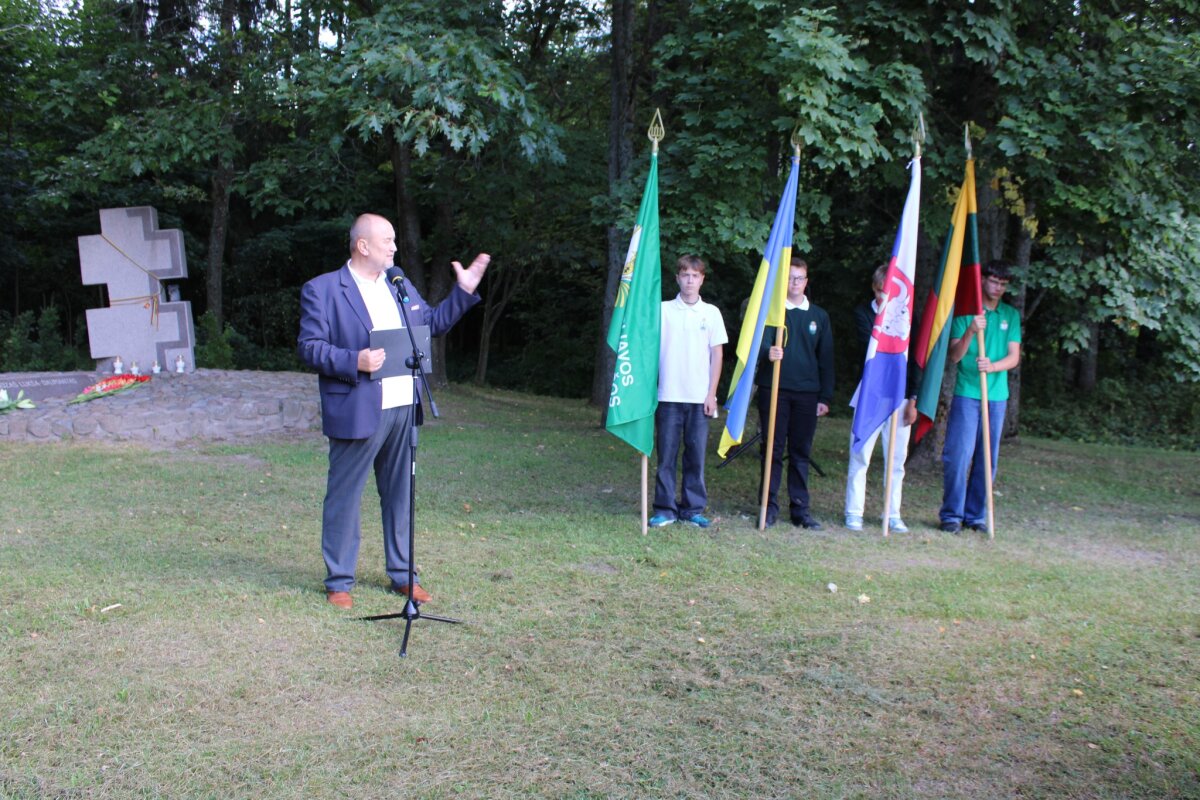 Renginį vedė ir su svarbiausiais Juozo Lukšos-Daumanto biografijos faktais bei šios vietos, kur žuvo partizanas, reikšme, čia rengiamų minėjimų tradicija supažindino Garliavos Juozo Lukšos gimnazijos direktorius, istorijos mokytojas-ekspertas Vidmantas Vitkauskas. Maldą sukalbėjo kapelionas Arnoldas Valkauskas, sveikinimo kalbas sakė Seimo narys Šarūnas Šukevičius, Majoro Juozo Lukšos mokymo centro štabo viršininkas, laikinai einantis ir šio mokymo centro viršininko pareigas majoras Aurimas Lapkauskas, Juozo Lukšos-Daumanto dukterėčia, partizano Antano Lukšos-Arūno dukra Dalia Lukšaitė-Maciukevičienė.