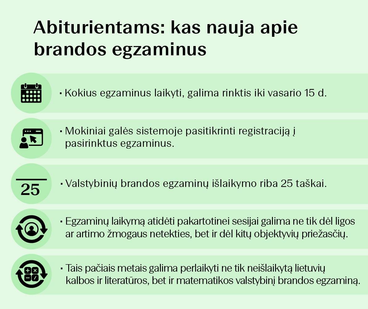 Abiturientai turės daugiau laiko apsispręsti, kokius egzaminus laikyti, – pasirinkimo laikas pratęstas nuo lapkričio 25 d. iki vasario 15 d.