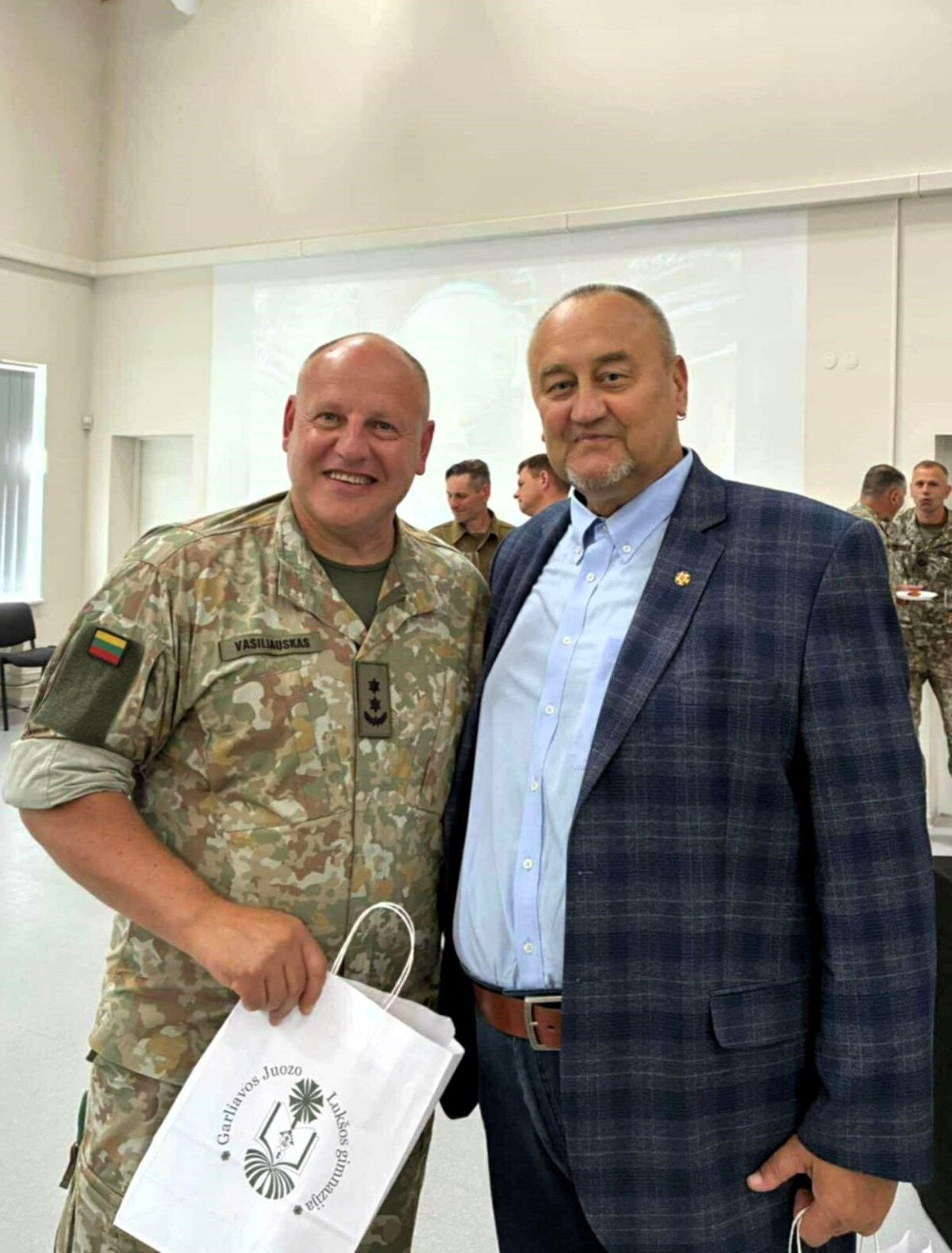 Šiuo metu laikinai mokymo centrui vadovauti paskirtas Juozo Lukšos mokymo centro štabo viršininkas mjr. Aurimas Lapkauskas. Po renginio oficialiosios dalies gimnazijos direktorius su viršininku mjr. A. Lapkausku aptarė tolimesnio bendradarbiavimo galimybes ir vėliau su juo susitiko Pabartupyje kartu minint Juozo Lukšos-Daumanto žūties 74-ąsias metines.