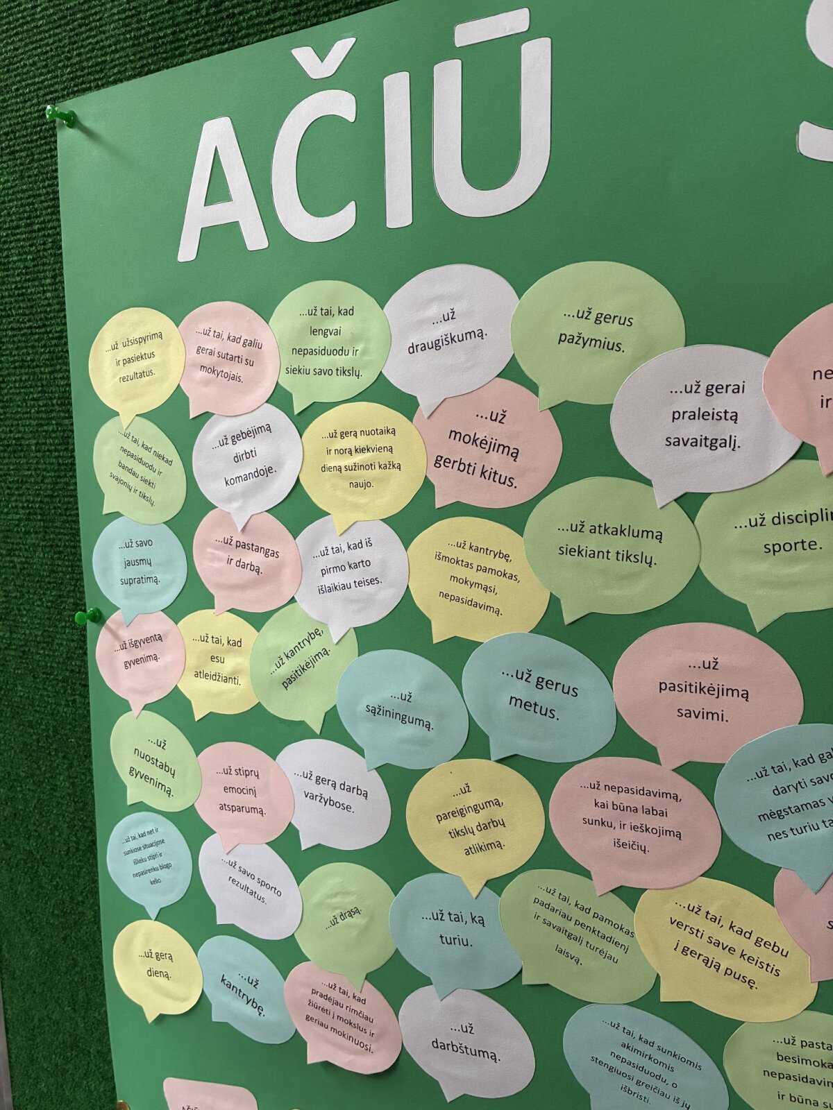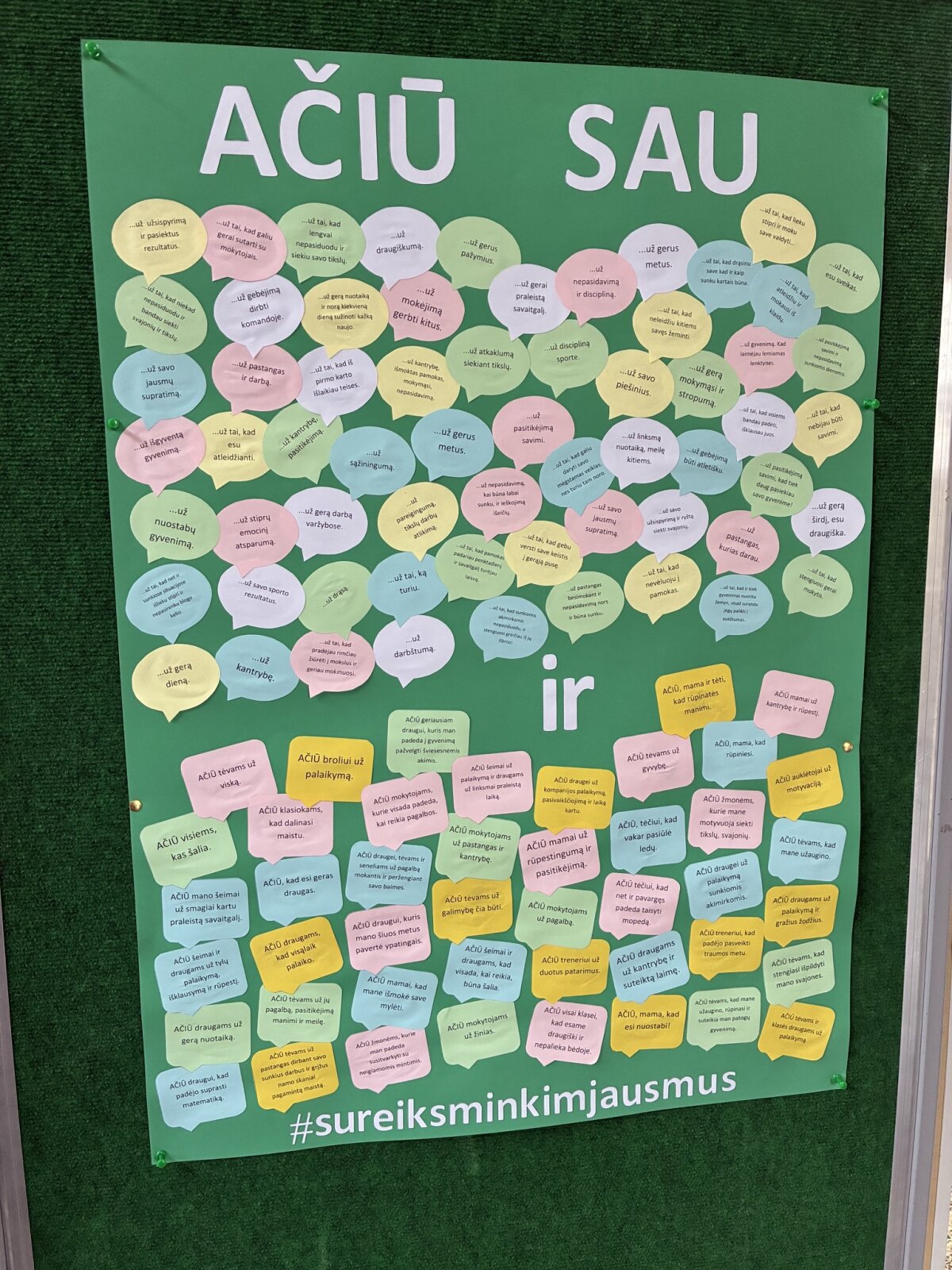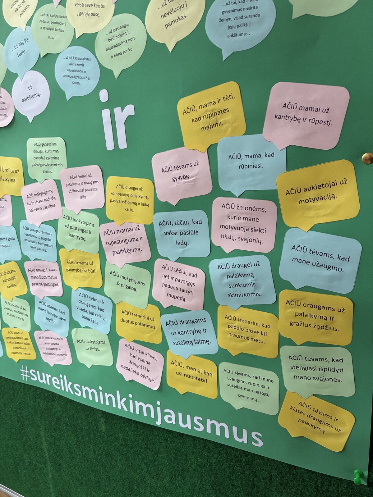 . Užrašytos mintys buvo panaudotos Jaunimo linijos #sureiksminkimjausmus iniciatyvos plakatui. Dėkingumo praktika padeda keisti mąstymą, skatina sąmoningumą, didina savivertę, gerina nuotaiką