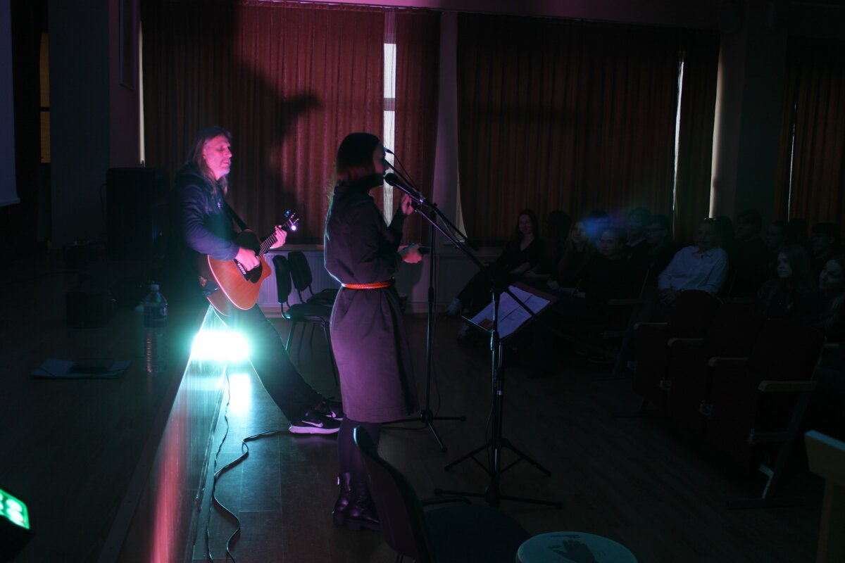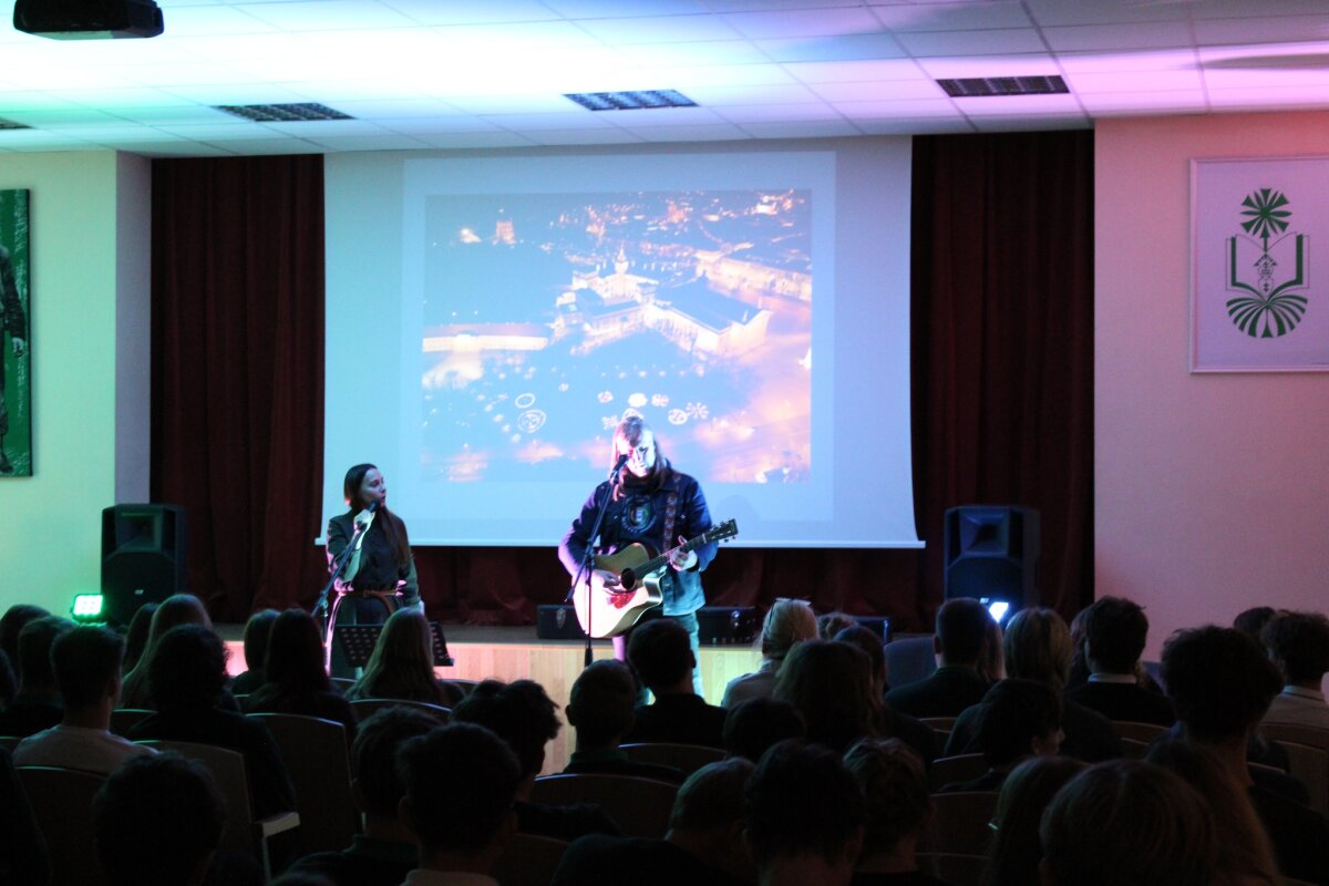 Penktadienį gimnazijoje vyko Aistės Smilgevičiūtės ir Roko Radzevičiaus koncertas