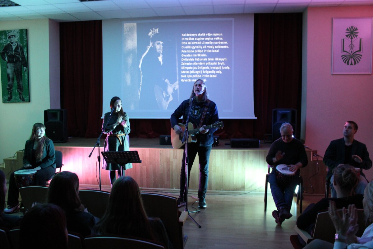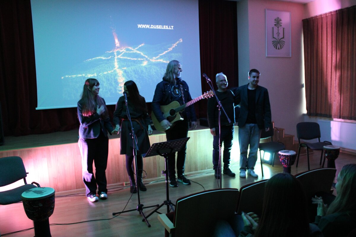 Penktadienį gimnazijoje vyko Aistės Smilgevičiūtės ir Roko Radzevičiaus koncertas. Šį kartą menininkai pristatė jautrią mitologinę dramą ,,Dūšelės", pasakojančią apie dviejų pasaulių, gyvenimo ir mirties ribą, mistinę sielos kelionę į Anapus. Koncerto pabaigoje, Aistė sudainavo gražiausią eurovizinę dainą ,,Strazdas". Na, ir kaip gi, be ,,Sudainuokime Lietuvą", kuri jau tapo antru gimnazijos himnu.