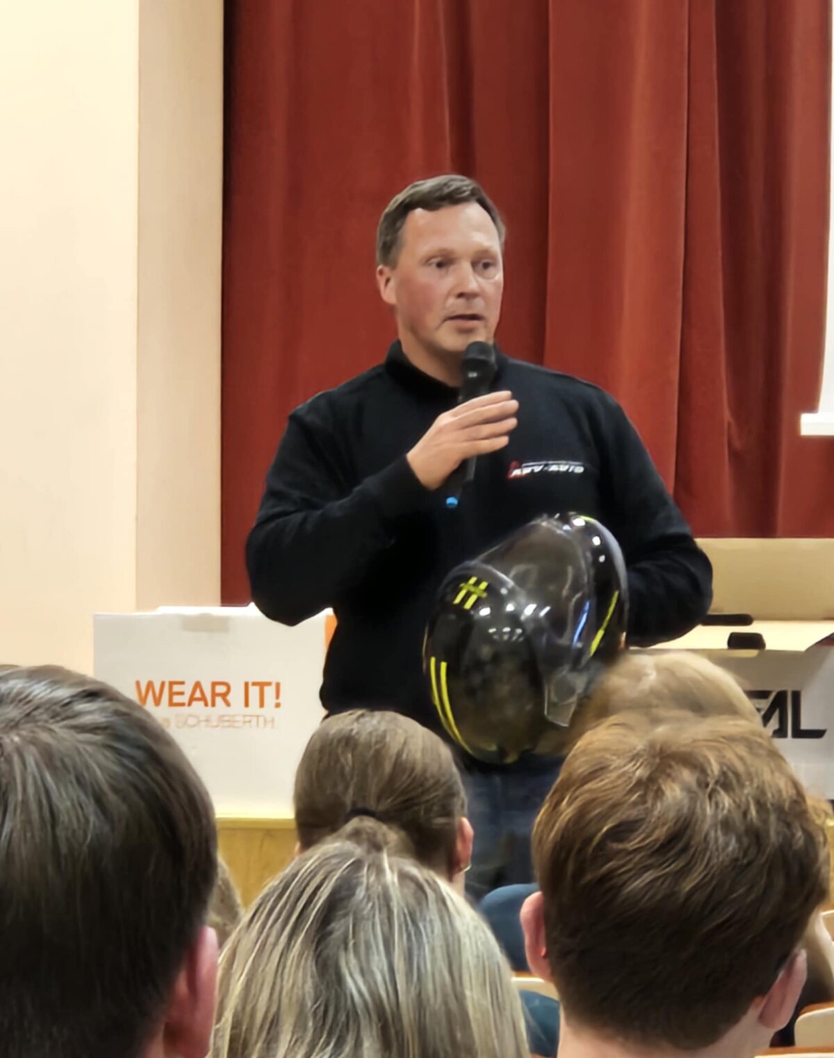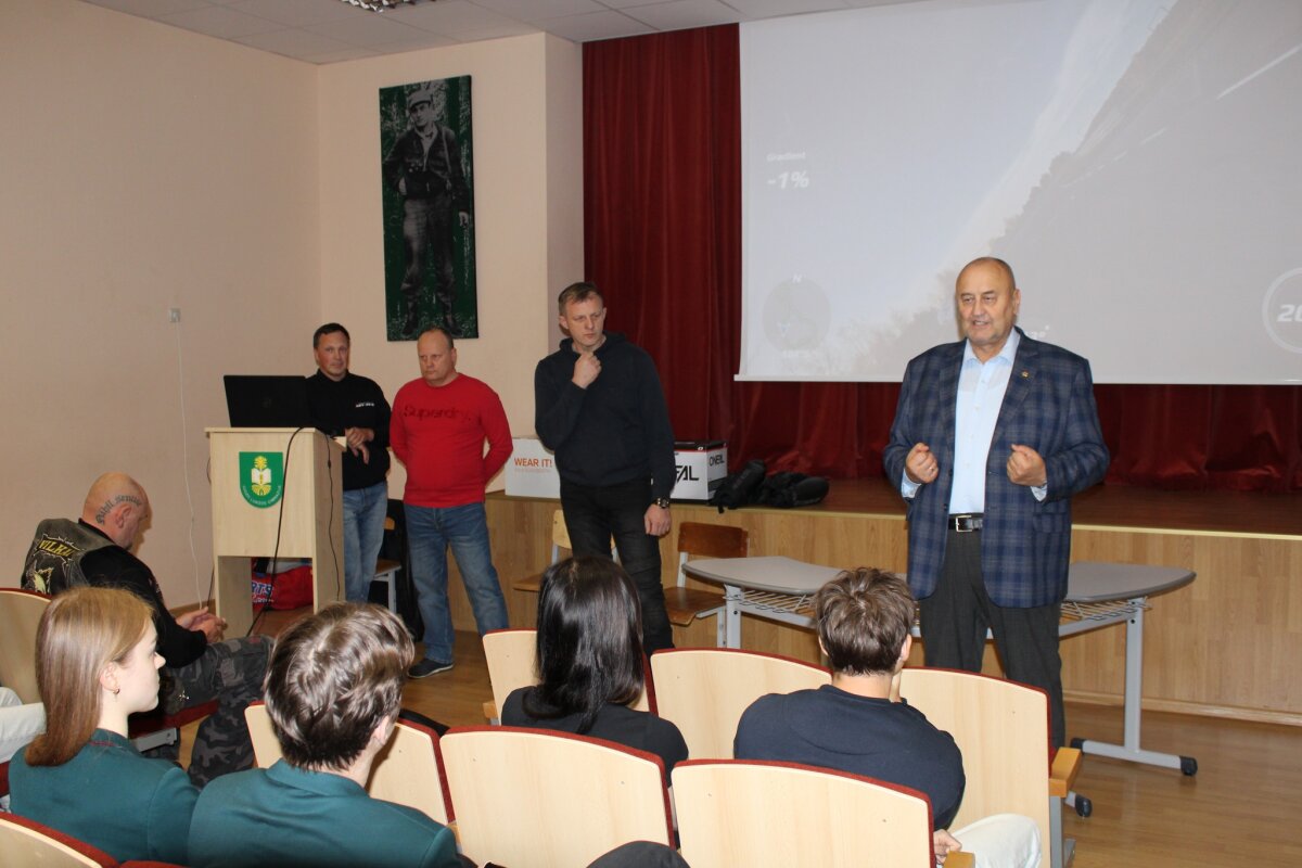 priemonėmis. Direktoriaus Vidmanto Vitkausko ir mokinių tėvų atstovo Mariaus Banuškevičiaus iniciatyva mokiniams suorganizuoti susitikimai su motociklininkų klubo „Vilkai MC“ atstovais, „Navas racing club“ atstovais Linu Navicku ir Vidu Stankevičiumi, ARV auto instruktoriumi Edvardu Vanagu. Mokiniams rodyta virtuali mokomoji medžiaga apie pagrindinius kelių eismo taisyklių reikalavimus bei autoįvykius nulėmusias vairuotojų klaidas. Mokiniai taip pat aptarė saugesnio eismo kultūros kūrimo taisykles, kurių privalu laikytis kelyje, būtinas dėvėti apsaugos priemones ir tinkamą jų pasirinkimą. Tokios iniciatyvos skatina jaunimą suprasti, kad adrenalino poreikį galima patenkinti saugiai, pvz., autosporto renginiuose ar kartodromuose, o ne gatvėse.