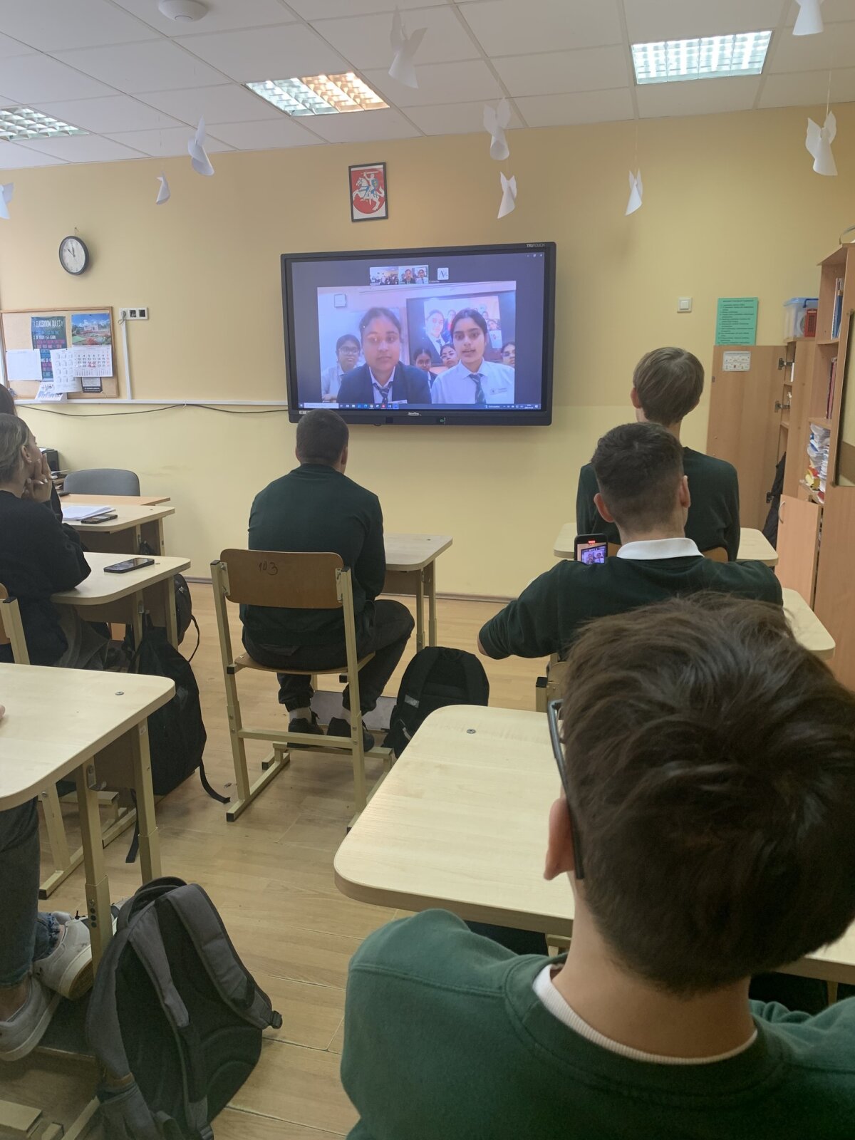 miestus ir bendruomenes bei atsakingą vartojimą. Visos temos nagrinėjamos per vaizdo konferencijas projekto Pasauliniame jaunimo forume ir aptariamos per Jungtinių Tautų modelio simuliaciją ir Bendruomenių rūmų stiliaus debatus. Mūsų gimnazijos mokiniai koordinuojami anglų kalbos mokytojos Editos Liutkevičienės pasirinko video konferenciją su Indijos Douglas Memorial Higher SS.