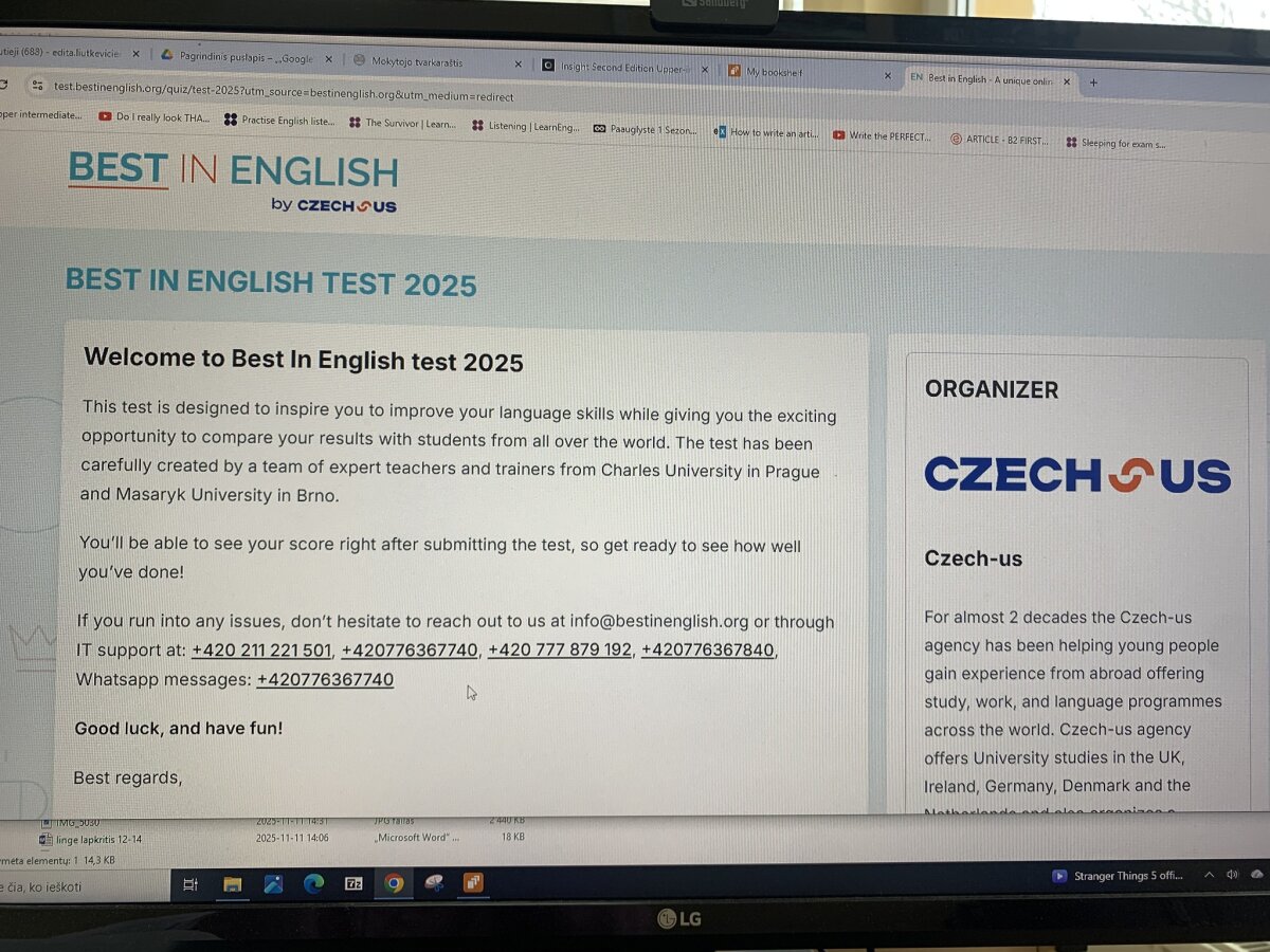 Lapkričio 27 d. kaip ir kiekvienais metais mūsų gimnazija dalyvauja tarptautiniame anglų kalbos konkurse BEST IN ENGLISH