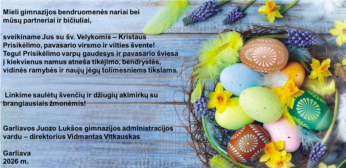 Siunčiame Garliavos Juozo Lukšos gimnazijos administracijos sveikinimą.