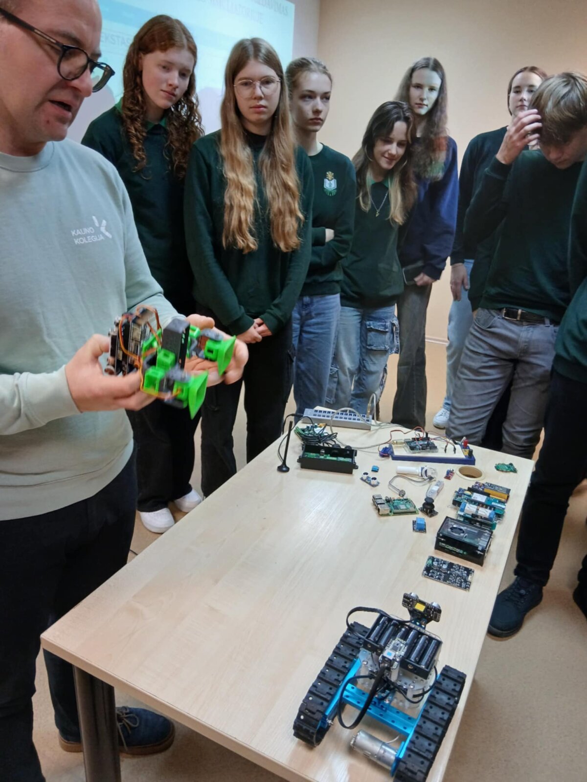 I-III klasių mokiniai klausėsi Kauno A.Žikevičiaus saugaus vaiko mokyklos sveikatos psichologės Nidos Gruodienės pranešimo „Psichologinis atsparumas ir karjera“, finansuoto Kauno rajono savivaldybės administracijos lėšomis pagal psichoaktyvių medžiagų vartojimo prevencijos projektą „Mes nepriklausomi-13“. N.Gruodienė pristatė svarbiausius veiksnius nulemiančius žmogaus gebėjimą susidoroti su sunkumais, krizinėmis situacijomis, valdyti stresą. Didelį dėmesį skirianti mokinių priklausomybių prevencijai, psichologė teigė, kad tik būdami laisvi nuo priklausomybių galime pilnai išnaudoti savo talentus ir galimybes bei fizinę, socialinę ir dvasinę gerovę. Kauno kolegijos Kompiuterinių technologijų katedros lektorius Danielius Adomaitis ID ir IIE klasės mokiniams vedė edukaciją „Kūrybinės išmaniųjų sistemų programavimo dirbtuvės“. STEAM praktinėje veikloje mokiniai išbandė programavimą ir susipažino su studijų perspektyvomis. IIA klasės mokiniai lankėsi Šv. Ignaco Lojolos kolegijoje. Gimnazistai susipažino su kolegijos studijų programomis, stojimo sąlygomis bei praktiškai išbandė ortopedijos technologijų studijų programą. IID, IIID klasės mokiniams pristatytos Vilnius TECH organizuojamos studijų programos. Kauno maisto pramonės ir prekybos mokymo centro organizuotoje edukacijoje IIF klasės mokiniai susipažino su kelionių pardavimo agento, virėjo ir kitomis profesijomis, mokymosi bei darbo sąlygomis.