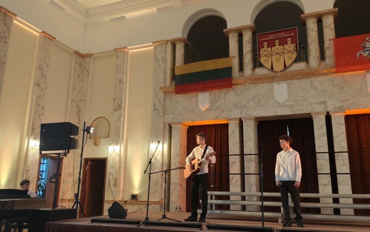 Šiandien Kauno Karininkų Ramovėje vyko XX-asis Kauno miesto ir rajono mokinių patriotinės dainos konkursas, skirtas Lietuvos kariuomenei paminėti. Deividas Kuryšev IIe kl.,Aleksas Kostrica IIIc kl. ir Faustas Aleškaitis IIId kl. atlikę dvi dainas, pelnė
