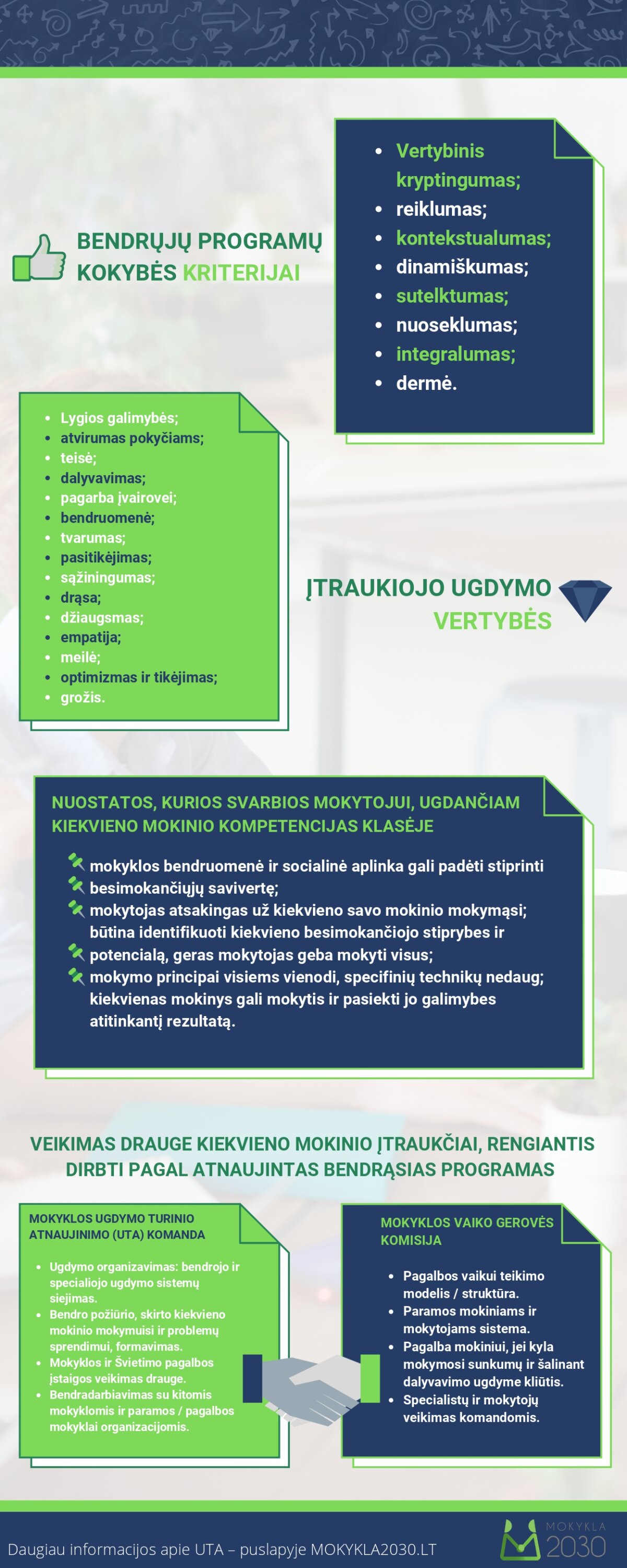 • Atnaujintose bendrosiose programose laikomasi į kompetencijas orientuoto ugdymo krypties. Tai reiškia, jog  mokinio tikslas bus ne tik įgyti žinių, tačiau ir mokėti jas pritaikyti, turėti daugiau šiuolaikiniame pasaulyje reikalingų įgūdžių.  Siekiama ugdyti pažinimo, skaitmeninę, socialinę, emocinę ir sveikos gyvensenos, kūrybiškumo, pilietinę, kultūrinę ir komunikavimo kompetencijas.
